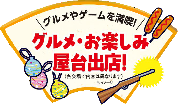 会場ごとのお楽しみ企画、ご家族で楽しめるコーナー、当日限りのお得な商品等をご用意しております。