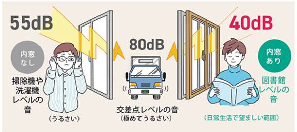空気の層が防音壁となり室内外の騒音を遮断してくれる効果もあります。